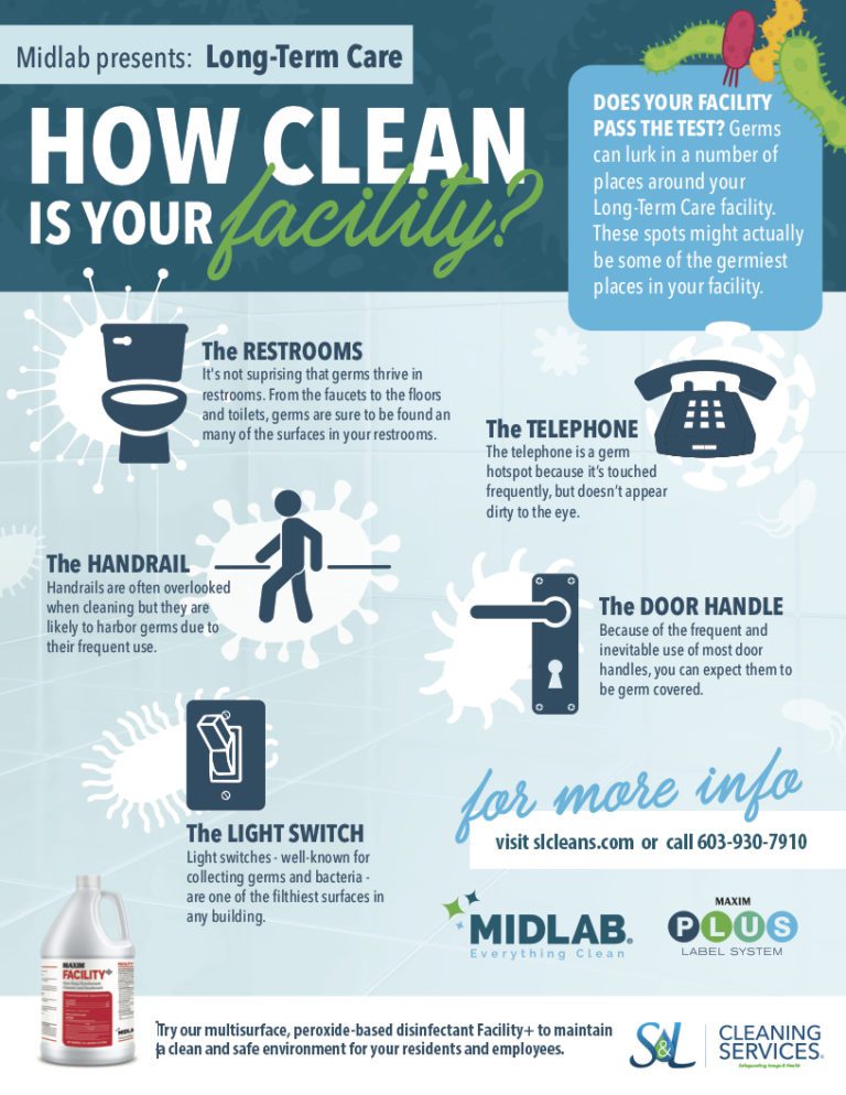 Cleaning contact points is very important in preventing the spread of the virus in your facility. What are contact points? Places that are touched frequently, like light switches, handrails, telephones, and door handles.